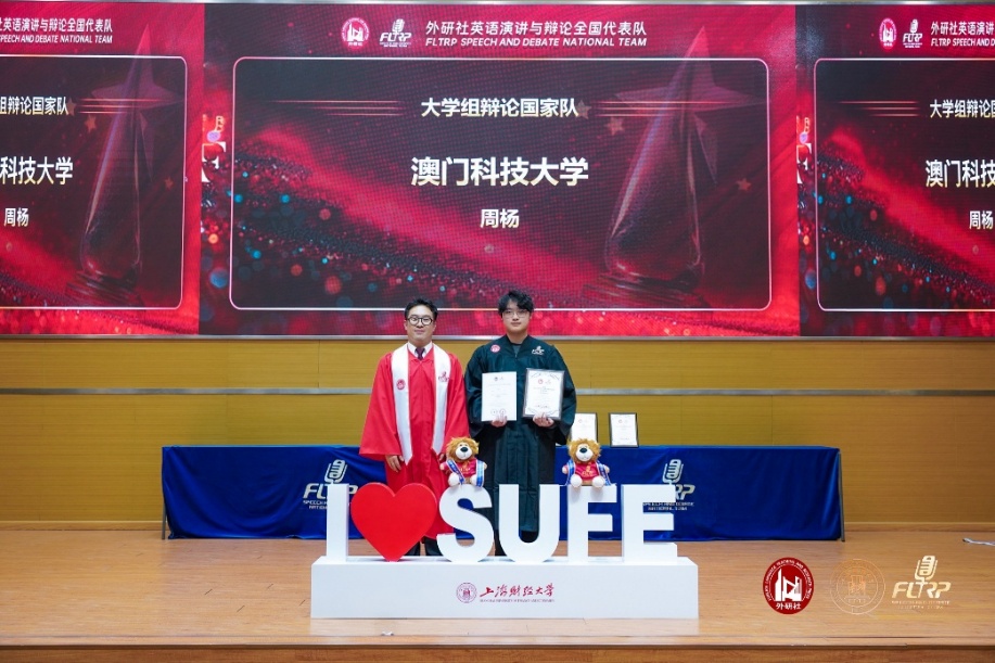由外语教学与研究出版社主办的2026中国大学生演讲与辩论锦标赛于1月18至22日在上海财经大学举行。澳门科技大学辩论队英语组荣获公开组季军并成功入选大学组辩论国家队。获奖成员包括商学院工商管理学士课程供应链管理专业四年级同学郑姝婷及工商管理学士课程人力资源管理专业三年级同学周杨。本次比赛体现商学院学生的跨文化沟通实力,体现学院支持学生多元发展的教学理念。